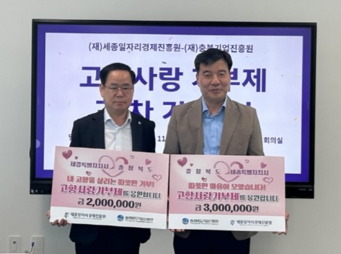 Çà»ç¿¡´Â ÀÌÈ«ÁØ ¼¼Á¾ÁøÈï¿øÀå°ú Çã°æÀç ÃæºÏÁøÈï¿øÀåÀ» ºñ·ÔÇÏ¿© ÀÓÁ÷¿ø 8¸íÀÌ Âü¼®ÇÑ °¡¿îµ¥, ¼¼Á¾ÁøÈï¿ø¿¡¼ 200¸¸ ¿øÀ», ÃæºÏÁøÈï¿ø¿¡¼ 300¸¸ ¿øÀ» ¼·Î ±³Â÷ ±âºÎÇÏ¿© °íÇâ »ç¶ûÀÇ ¸¶À½À» ÀüÇß´Ù.