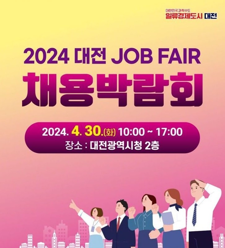 ´ëÀüÀÏÀÚ¸®°æÁ¦ÁøÈï¿øÀº ¿À´Â 4¿ù 30ÀÏ ´ëÀü½Ãû 2Ãþ ·Îºñ¿¡¼ ¿¸®´Â '2024 ´ëÀü JOB-FAIR ä¿ë¹Ú¶÷ȸ'¿¡ Âü°¡ÇÒ ¿ì¼ö Áß°ß¡¤Áß¼Ò±â¾÷À» ¸ðÁýÇÑ´Ù°í ¹àÇû´Ù.