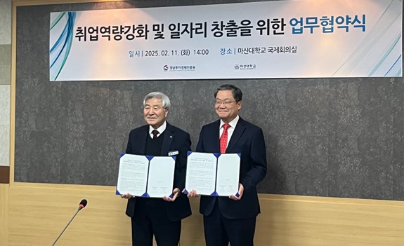 11ÀÏ ¸¶»ê´ëÇб³ º»°ü ±¹Á¦È¸Àǽǿ¡¼ °æ³²ÅõÀÚ°æÁ¦ÁøÈï¿ø(ÀÌÇÏ ÁøÈï¿ø)°ú ¸¶»ê´ëÇб³´Â µµ³» û³âÀÇ Ãë¾÷¿ª·®°È ¹× ÀÏÀÚ¸® âÃâÀ» À§ÇÑ ¾÷¹«Çù¾àÀ» ü°áÇß´Ù.