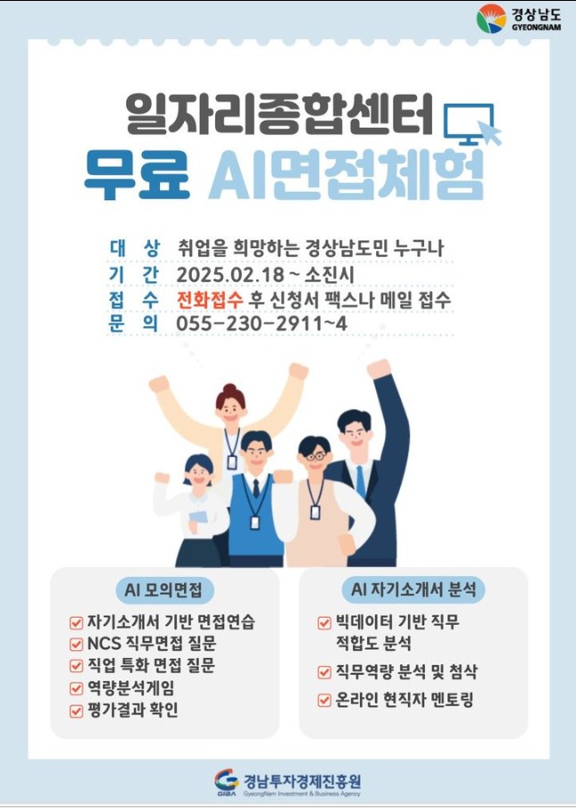 (Àç)°æ»ó³²µµÅõÀÚ°æÁ¦ÁøÈï¿øÀº 2020³â 8¿ùºÎÅÍ ¿î¿µ ÁßÀÎ °æ»ó³²µµÀÏÀÚ¸®Á¾ÇÕ¼¾Å͸¦ ÅëÇØ ¿ÃÇØ ¹«·á AI¸éÁ¢ üÇè µî ±¸ÀΡ¤±¸Á÷ÀÚ ¸ÂÃãÇü ÀÏÀÚ¸® ¼ºñ½º Áö¿øÀ» °ÈÇÑ´Ù°í ¹àÇû´Ù.
