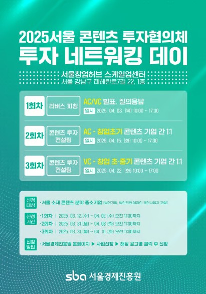 ¼¿ï½ÃÀÇ ¹®ÈÄÜÅÙÃ÷ »ê¾÷ °æÀï·ÂÀ» ¸¸µå´Â Áß¼Ò±â¾÷ Áö¿ø±â°ü ¼¿ï°æÁ¦ÁøÈï¿ø(SBA, ´ëÇ¥ ±èÇö¿ì)Àº ¼¿ï ÄÜÅÙÃ÷ ÅõÀÚÇùÀÇü ¼Ò¼Ó AC(¾×¼¿·¯·¹ÀÌÅÍ) ¹× VC(º¥Ã³Ä³ÇÇÅ»)¿Í ÇÔ²² ÄÜÅÙÃ÷ ±â¾÷ÀÇ ÅõÀÚÀ¯Ä¡¿Í ¼ºÀåÁö¿øÀ» À§ÇÑ 'ÅõÀÚ ³×Æ®¿öÅ· µ¥ÀÌ' ÇÁ·Î±×·¥À» ¿À´Â 4¿ù¿¡ ÃßÁøÇÑ´Ù°í 31ÀÏ ¹àÇû´Ù.