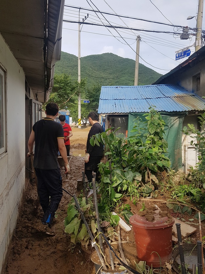 [¾Æ»ê=´º½ºÃæÃ»ÀÎ] Ãæ³²°æÁ¦ÁøÈï¿ø(¿øÀå ¿À±¤¿Á)ÀÌ Áö³ 8¿ù 3ÀÏ ÁýÁßÈ£¿ì·Î ÀÎÇØ ÇÇÇØ°¡ ¹ß»ýÇÑ °ü³» ¸Í¾¾Çà´Ü ÁÖº¯ ¼öÇØº¹±¸ ÀÛ¾÷À» À§ÇØ Á÷¿øµé°ú ÇÔ²² ±¸½½¶¡À» Èê·È´Ù.